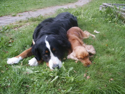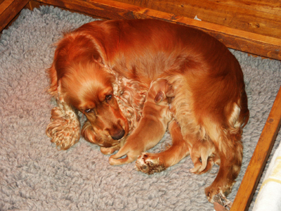 Wilma har fått tre valpar, två röda hanar och en svart hane.