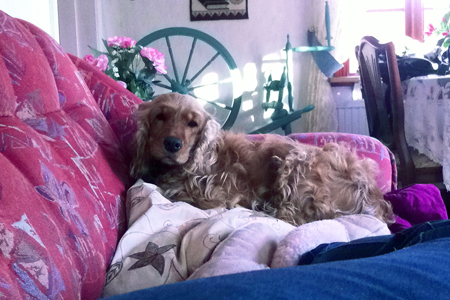 Jag är delägare i en liten gård i Magretetorp i nordvästra Skåne. Ibland far vi dit över en helg med ett par hundar och har lite kvalitetstid med de hundar vi har med oss. Här ligger Bailey och myser i soffan. Tonje och Figaro fick också vara med denna gång.
