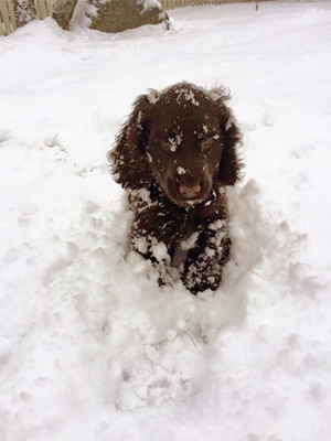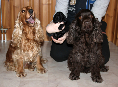 16-01-01 På nyårsafton började Bailey visa tecken på att valparna var på väg, Så det blev en speciell nyårsnatt för mig. Jag undrade vilket år som valparna skulle födas. Men den första valpen kom inte förrän vid 8-tiden på morgonen, Sedan kom tre fina valpar till, det blev tre svarta och en röd valp. Ni kan läsa mer om kullen här; |