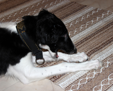 Alfons (Pim-Pims andra kull) är stolt över sitt ben |