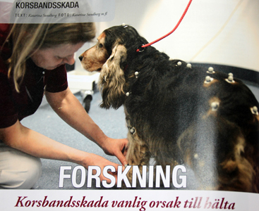 Han har ställt upp i en kontrollgrupp där de forskar om korsbandsskador på hund på SLU i Uppsala.