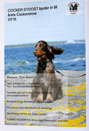 Fine Malte (Mandys tredje kull) fick pryda annonsen till Cocker Sydosts utställning i Asarum 17/9.