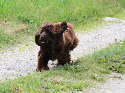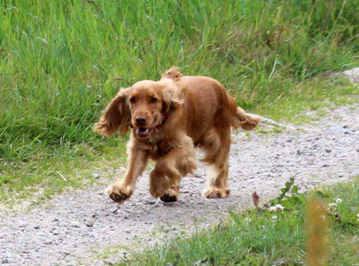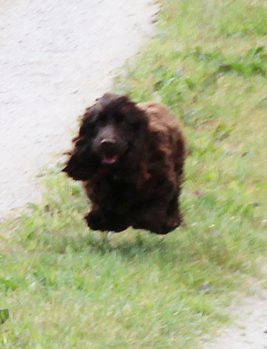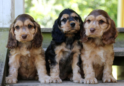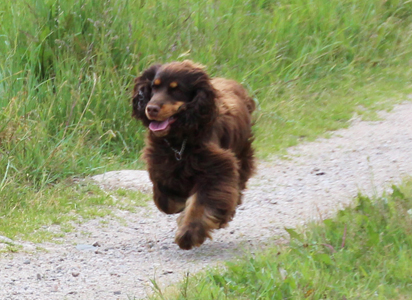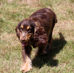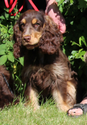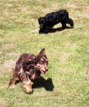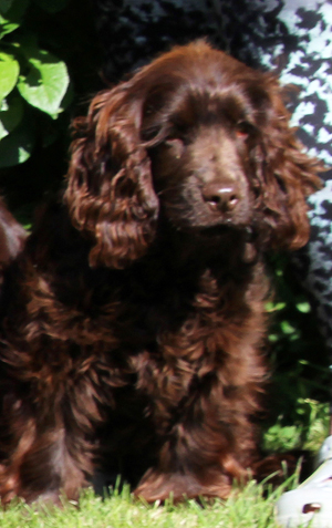 Då kommer det små valpar snart? Jag är mycket intresserad och har min familj med mig. Röd eller brun kompis spelar ingen roll - men det kan inte vara en svart cocker, för den färgen är MIN. Matte säger att det ska vara en flicka, det fattar jag inte alls men hon bestämmer.