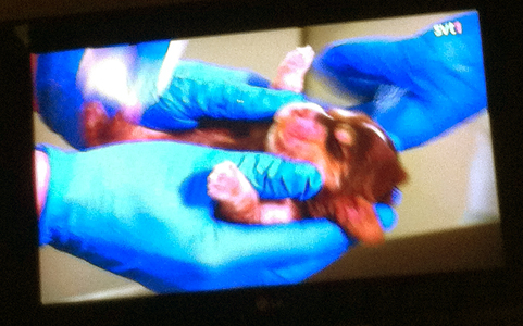 I TV-serien "Djursjukhuset" på SVT sändes idag ifrån när Zamiras och Brunos valp var sjuk och fick söka sjukhusvård. Tyvärr klarade sig inte den lilla valpen då den hade fått någon magåkomma, men fyra av de sex valparna klarade sig och lever nu bra liv. Zamira finns på kennel Sable Dreams.