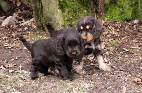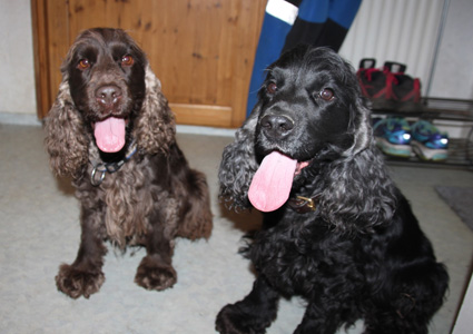 Vi har haft Timmy (Sallys fjärde kull) och Wiggo (Fidelis andra kull) på besök ett par dagar när mattarna har varit på hästtävlingar i Göteborg. Mycket mysiga hundar! |