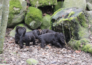 Charlie i Boston, USA, Hera i Höllviken, Gaia i Hilleröd i Danmark, Zeppo i Pulp i Filand, Muffin i Finja, Fideli här hemma på kenneln och Zack i Gislaved |