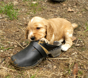 Skosnören är altid gott tycker Bailey och Leia Selma har hittat en god toffel