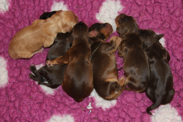 Den 8:e mars föddes Lunas och Pajas valpar. Det blev en röd hane, en brun hane, två brunsobelhanar, en brun tik och en brunsobeltik.