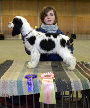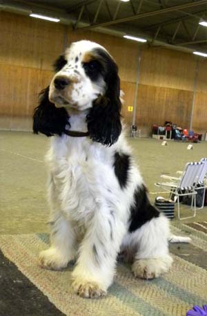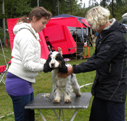 Tinka får ha regnjacka på sig i väntan på att gå in i ringen